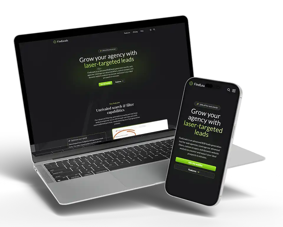 FindLeads est une startup SaaS basée en Belgique qui a créé un outil de génération de leads pour les agences web. La société cherchait à réorganiser son site web pour mieux refléter l’identité de sa marque et améliorer l’expérience utilisateur. Montagne Noire Web Studio a été sélectionné pour entreprendre une refonte complète et un redéveloppement, transformant la page d’accueil de FindLeads pour qu’elle soit moderne, accessible et conviviale.